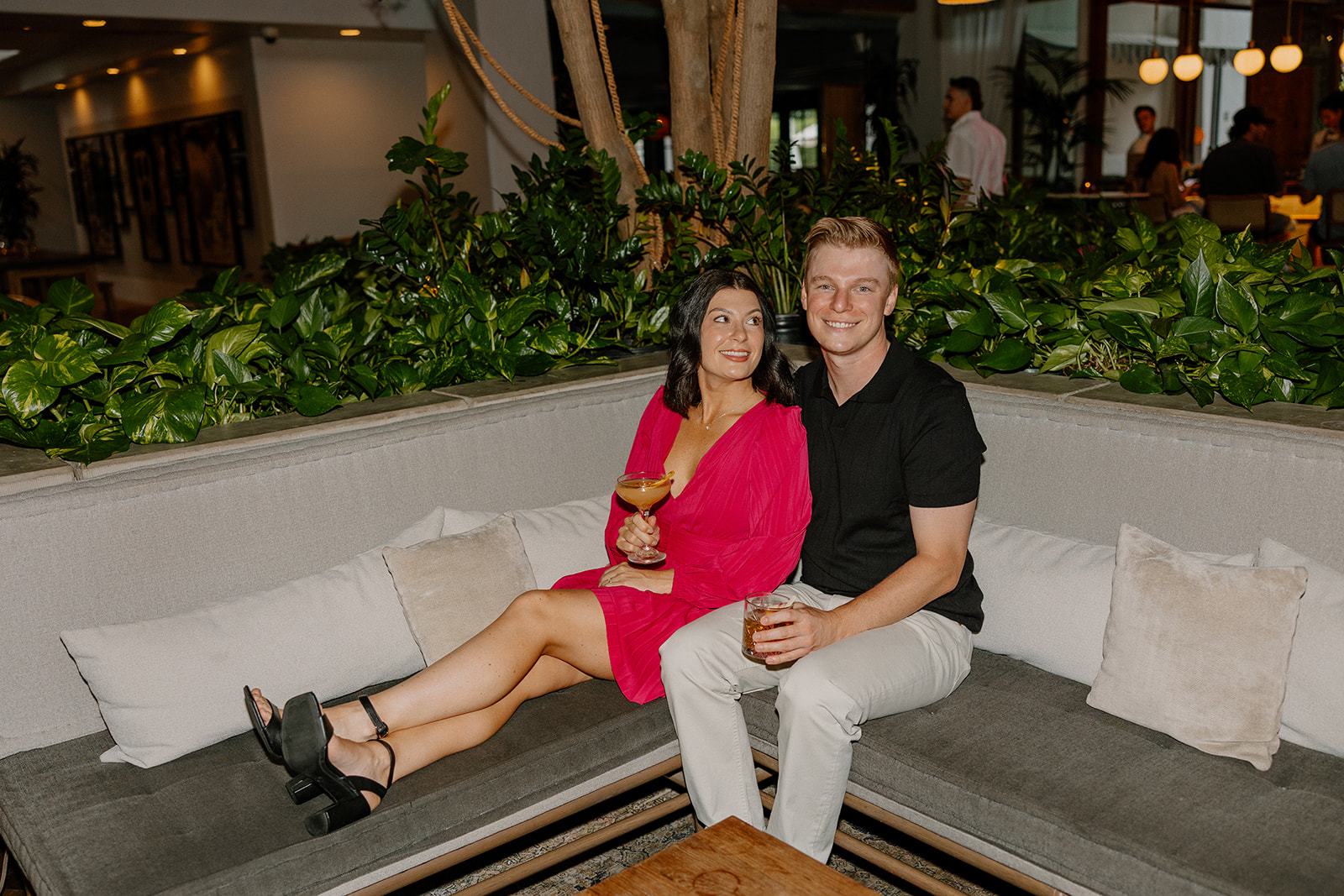 Think date night energy. You grab a drink, wander the property together, and maybe sit at the bar for a minute while the sun starts to set. Instead of feeling like a photoshoot, it just feels like you two hanging out somewhere beautiful, and I’m there tagging along with a camera.