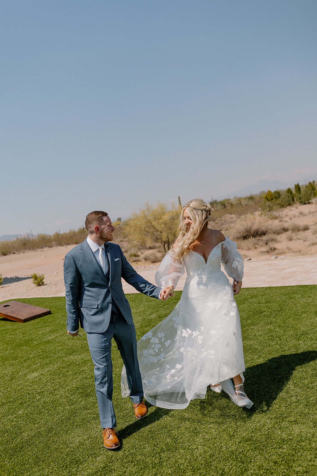 We shot their day here and left fully obsessed! Everything felt real and grounded, exactly the way they wanted it. And when the sun started to dip? Ohhhh, that’s when Desert View shows off! Their guests settled in, drinks in hand, soaking up the view, happy tears happening left and right. Right as the hills started turning that rich golden-amber color, we snuck out for a few portraits, and it was such a moment.